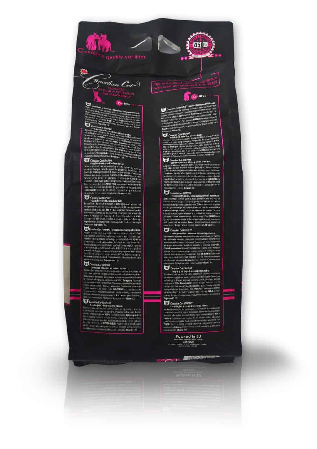 Super Benek Vám prináša podstielku Canadian Cat a to najvyššiu radu bentonitovej podstielky. Slovenský bentonit prešiel inovatívnym procesom dvojitej aktivácie s cieľom maximalizovať absorpčné vlastnosti a zároveň sme dosiahli, že granulky sú bez ostrých hrán a teda na dotyk sú veľmi príjemné. Granulky sú jemnej zrnitosti (0,4 – 2mm) svetlo šedej až bielej farby. Podstielka podľa nemeckého štandardu DIN 18132 má zvýšenú absorpčnú schopnosť až 450%. V teste spotreby obstála podstielka výborne a to so spotrebou podstielky 45cm3 pri absorbovaní 60ml tekutiny. Canadian Cat si môžete vybrať v troch rôznych vôňach a to prírodná vôňa, vôňa levandule a detského púdra „Baby powder“. Je určená pre všetky druhy mačiek každého veku.