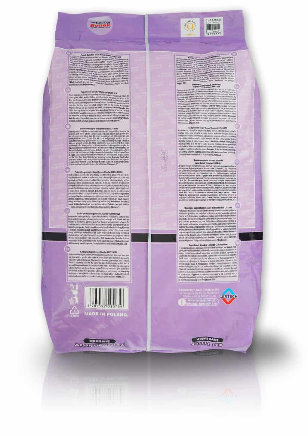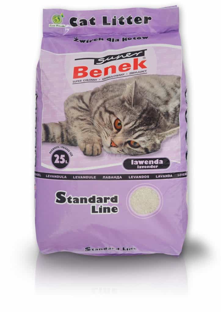 Super Benek Vám prináša bentonitovú podstielku rady Standard. Radu Standard radíme medzi základnú radu vysokej kvality so strednou zrnitosťou 1 – 4mm svetlo šedej farby. Vstupná surovina je slovenský bentonit, ktorý prešiel inovatívnym procesom aktivácie s cieľom zvýšenia jeho absorpčných vlastností. Podstielka podľa nemeckého štandardu DIN 18132 má zvýšenú absorpčnú schopnosť až 320%. V teste spotreby obstála podstielka dobre a to so spotrebou 65cm3 pri absorbovaní 60ml tekutiny (hlavne kvôli väčšej zrnitosti).