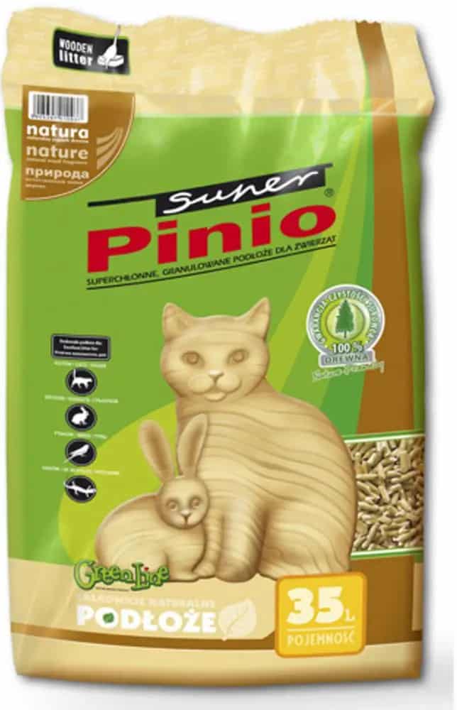 Super Benek Vám prináša podstielky radu PINIO. Jedná sa o drevené peletky o priemere 6mm zo smrekového dreva. Peletky majú svetlohnedú farbu a charakteristickú prírodnú arómu. Jedná sa o univerzálne stelivo určene nie len pre mačky ale aj pre hlodavce (zajace, morské prasiatka staršie ako 6 mesiacov), vtáky a jaštery. Pri styku s vodou sa stelivo rozpadne a dobre absorbuje nepríjemné pachy. Stelivo je čisto prírodné 100% kompostovateľné, pretože neobsahuje žiadne chemické látky. PINIO je idealna vrchná vrstva pri zajacoch, morčatách, jašteroch či vtákoch. Na spodnú vrstvu je vhodné použit Super Benek Economik ci Universal Compact pre dlhšiu výdrž steliva a lepšie pohtenie zápachov v klietke či terária.